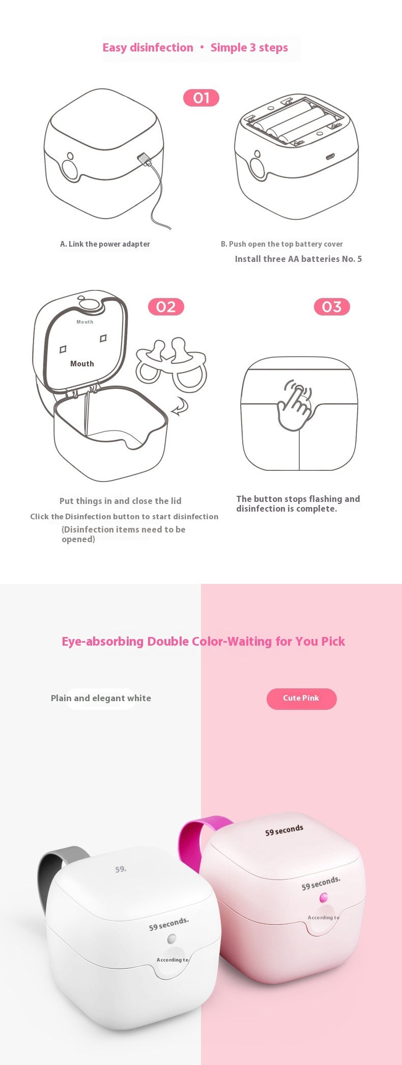 59 Seconds LED UV Mini Disinfection Box Pacifier Sterilizer